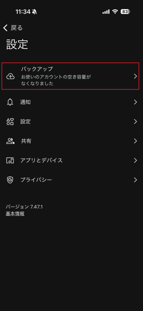- 圧縮設定でバックアップ(「保存容量の節約画質」を選択)