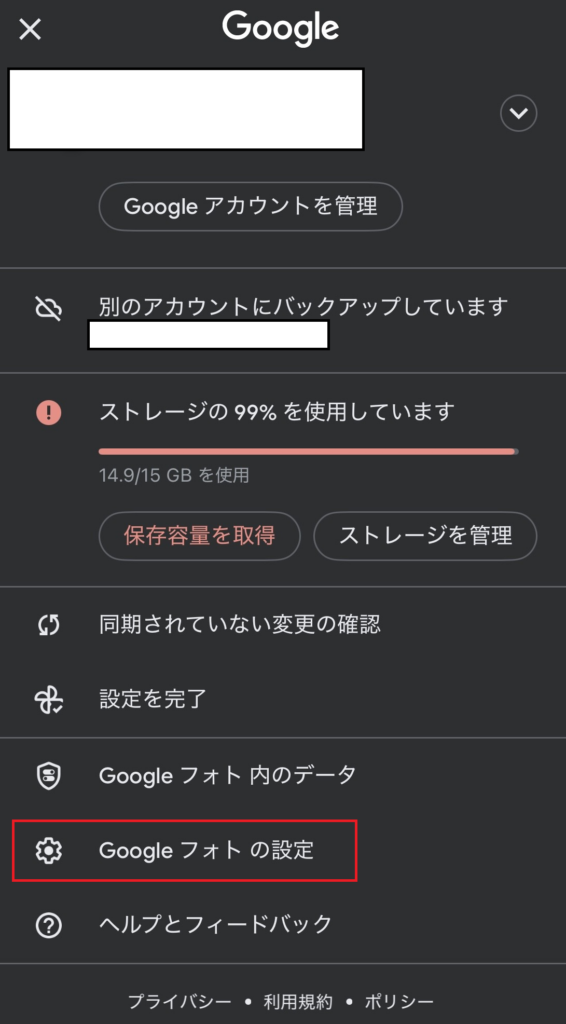 まずはGoogleフォトが自動でiPhoneの写真を同期しないように設定を変更します。