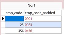 SELECT emp_code, LPAD(CAST(emp_code AS VARCHAR), 4, '0') AS emp_code_padded